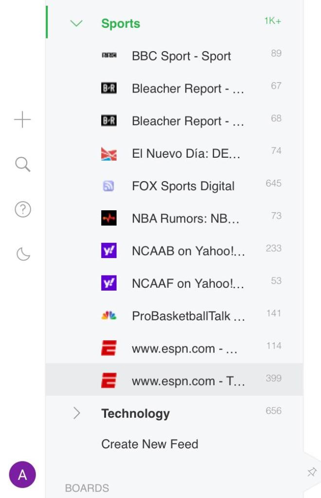 Sports Category: They’re all about sports. Some are more generals and some are more specifics. So BBC SPORT, EL NUEVO DIA DEPORTES, FOX SPORTS DIGITAL AND ESPN are all general sports. They’re not focus on just one type, although BBC Sport is about Uk or Europe. Both Bleacher reports are about college sports, one is about only basketball and the other one is one in general. Followed by Yahoo’s college basketball site and finally ProBasketball talk and NBA rumors which are both about basketball and what is going on.